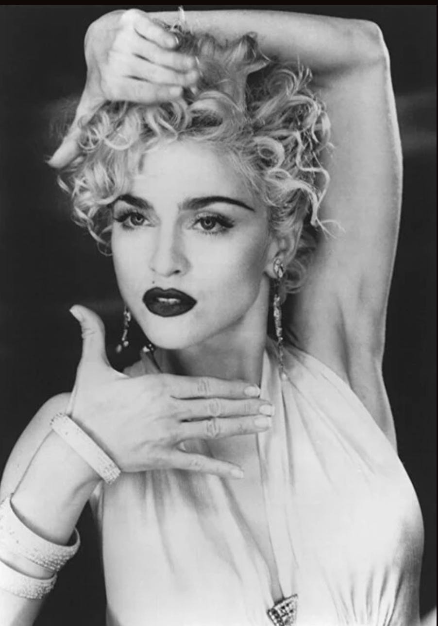 Madonna’s idea that universal superstardom was the way to dissolve, subvert, and especially transcend binary oppositions—it was intoxicating, like the MDMA that then dissolved inhibitions, class anxiety, and sexual stratification at raves.